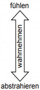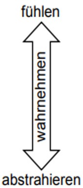 Die vertikale Achse in nebenstehender Abbildung beschreibt hierbei, wie etwas wahrgenommen wird, entweder durch direkte Erfahrungen und Erlebnisse (fühlen / spüren) oder aber durch theoretische Vorstellungen bzw. durch Abstraktion (herleiten).