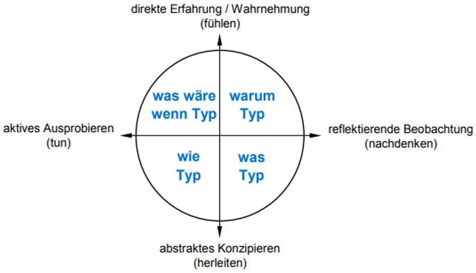 Hieraus abgeleitet ergeben sich 4 Lerntypen die nachfolgende Abbildung veranschaulicht, wobei jeder Lerntyp unterschiedliche Bedürfnisse beim Lernen aufweist.