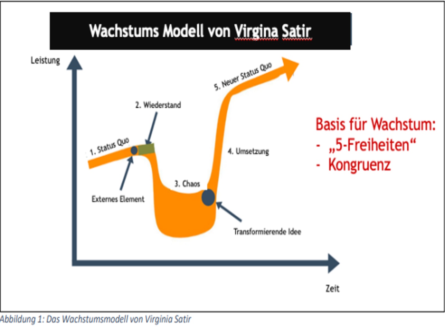 Das Wachstumsmodell von Virgina Satir beschreibt den Prozess, den ein Individuum, aber auch eine Organisation im Rahmen einer Veränderung und im Wachstum durchläuft.