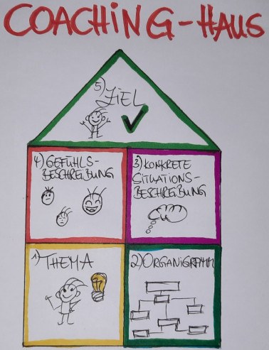 Deshalb habe ich mich auch in dieser Arbeit, mit der Auftragsklärung beschäftigt und erläutere somit weiter unten das Coaching-Haus mit möglichen Fragstellungen zu den verschiedensten Räumen, die bei einer Auftragsklärung durchgegangen werden.