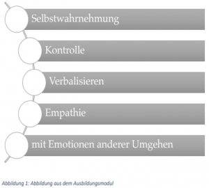 - Emotionen managen: Die eigenen Emotionen und Gefühle können, wenn sie erkannt, genutzt und verstanden werden, bewusst in das eigene Denken, Entscheiden und Verhalten einbezogen werden.