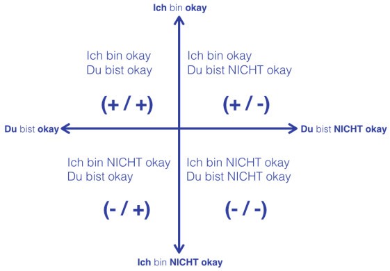 Soweit die Theorie von Gerald Hüter. Hört sich doch ganz simpel an. Vielleicht simpel, aber nicht einfach!! Auf dem weiteren Weg, dieses Thema näher zu beleuchten, kam ich auf das OK-OK Modell aus der Transaktionsanalyse, welches ich kurz vorstellen möchte.