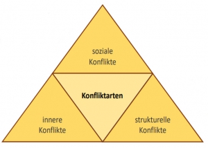 Die Ursachen von Konflikten sind vielschichtig, hier beispielhaft angeführt sind die schon erwähnten fünf Ausprägungen: